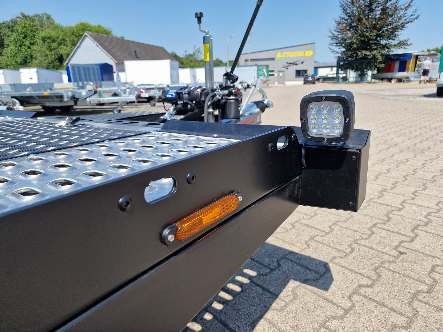 Achtung: die auf den Bildern zu sehende elektrische Seilwinde mit Batteriefach sowie die hydraulische Kippfunktion sind nur gegen Aufpreis erhältlich!