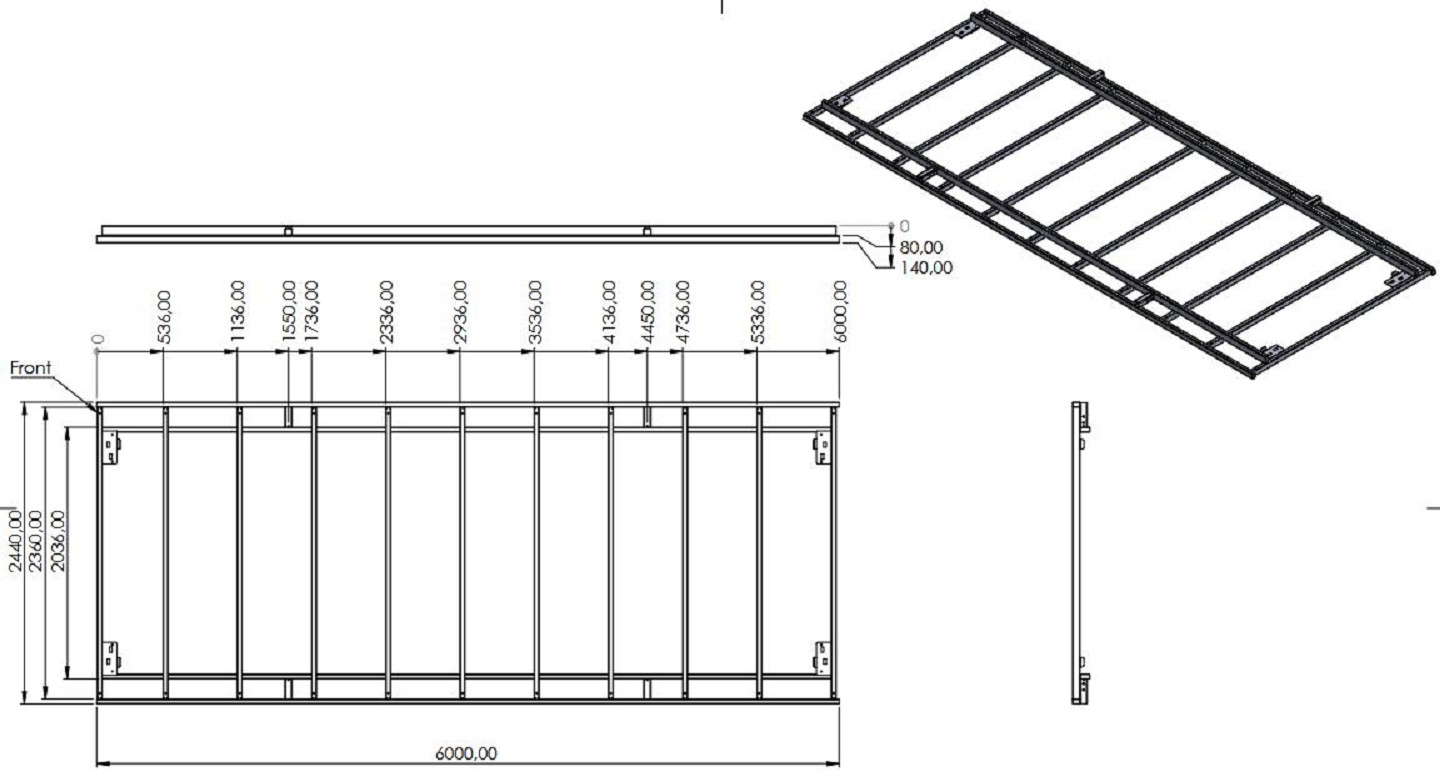1 Deck 600x244cm (ohne Stützen, nur Deck)